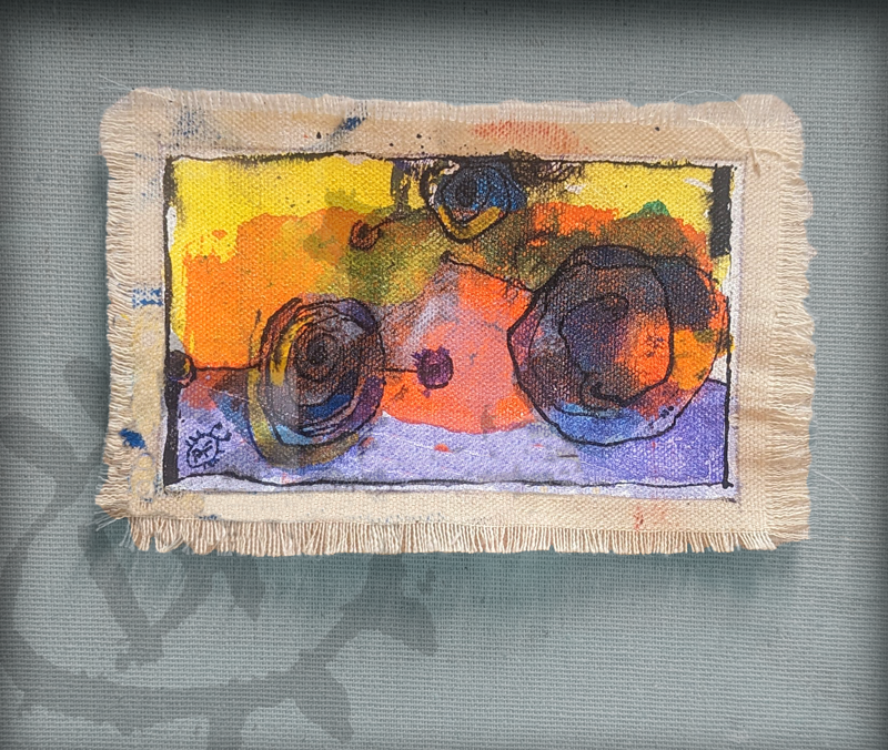 The PETITSTAPIS canvas are sold un-framed, floating and mounted on 12" X 14" size black board with a beveled textured mat.